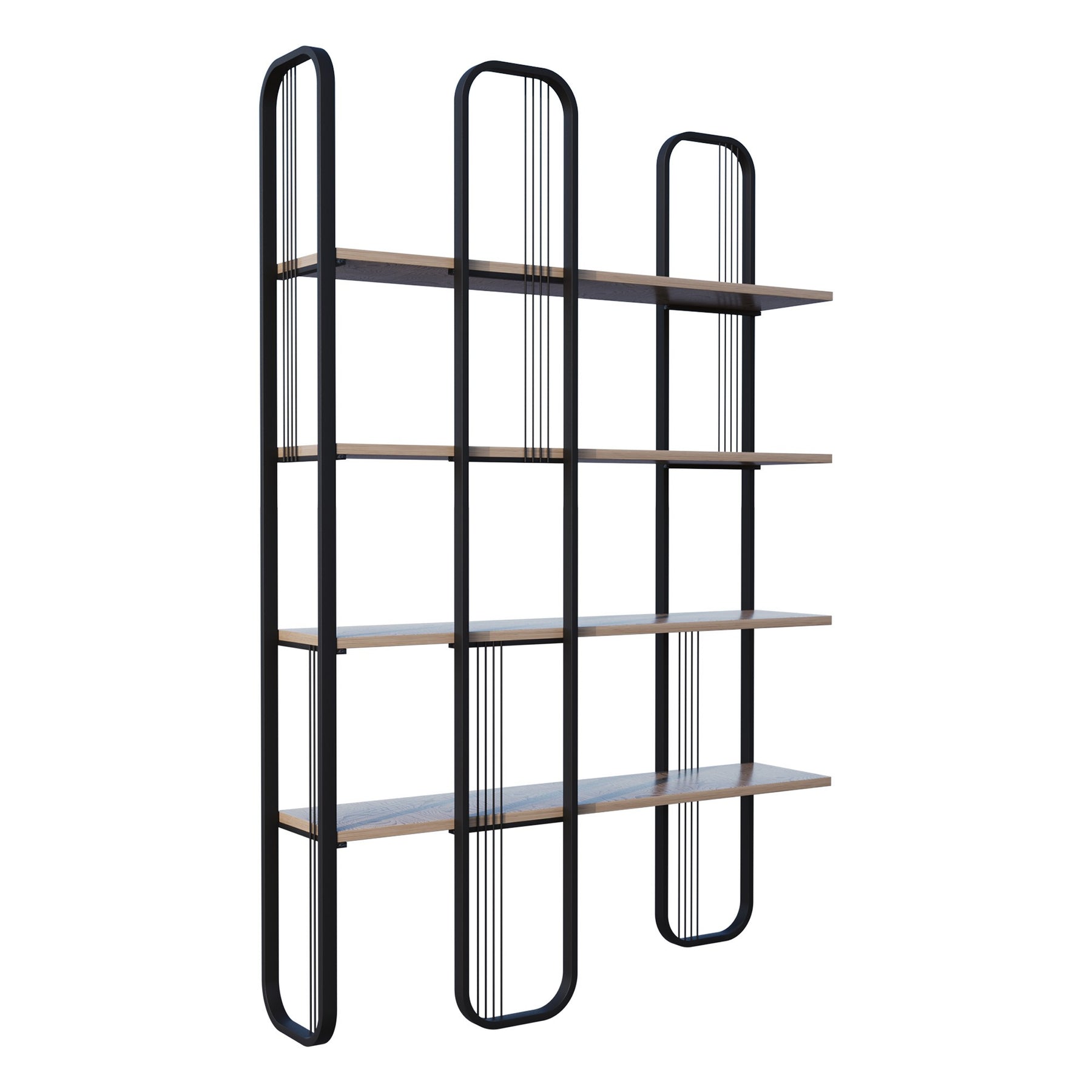 Dividi i tuoi spazi con eleganza grazie a questa libreria bifacciale, un complemento d'arredo dal forte impatto visivo che unisce stile industriale e funzionalità contemporanea. Caratterizzata da un'esclusiva struttura in metallo nero, questa libreria offre un design aperto e arioso, ideale per essere utilizzata come divisorio tra cucina e soggiorno o per arredare una parete con originalità.