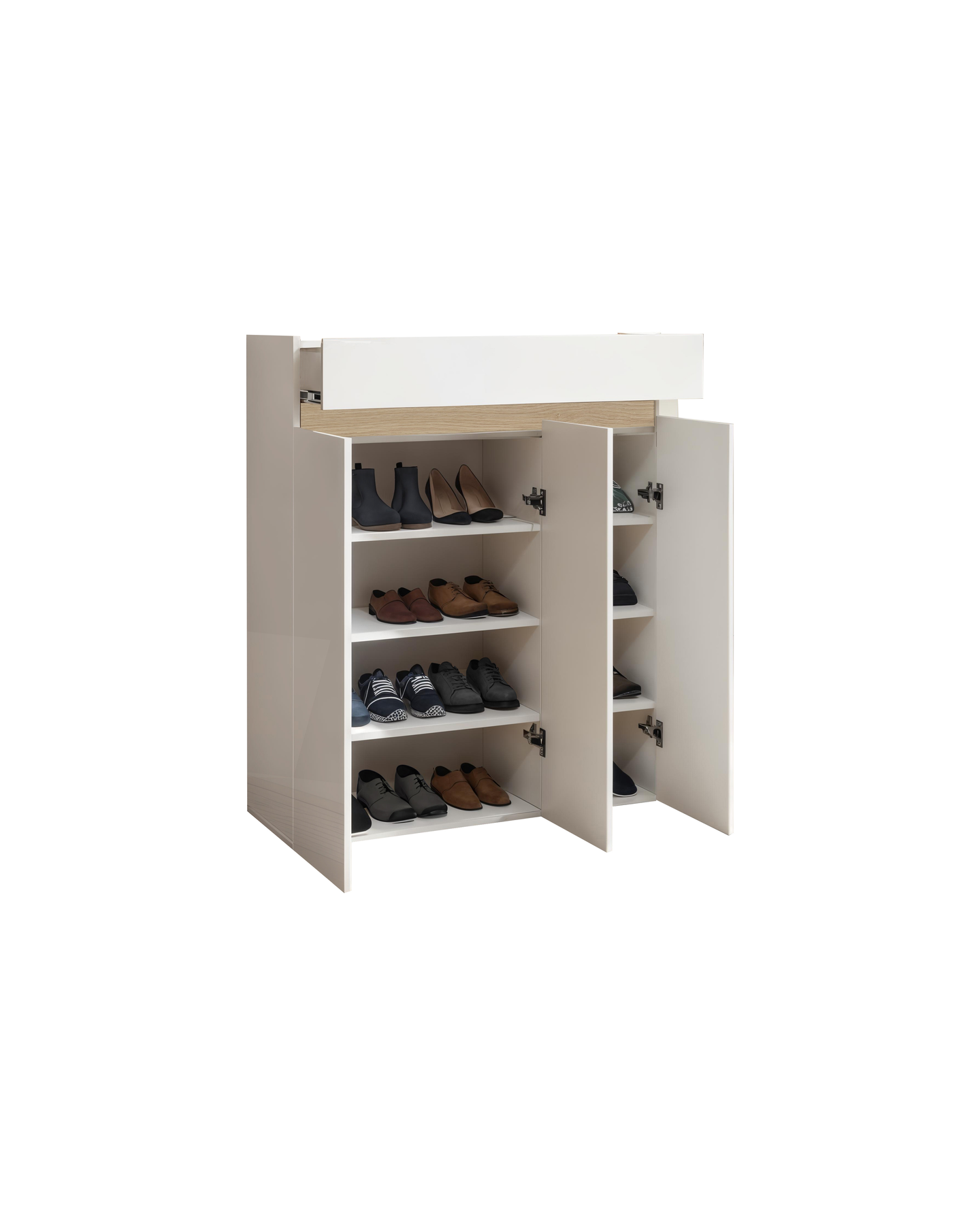 Mobile scarpiera da ingresso o soggiorno bianco lucido e rovere con 3 ante e cassetto cm 94x35x114h
