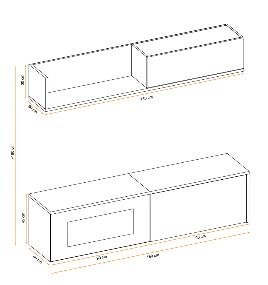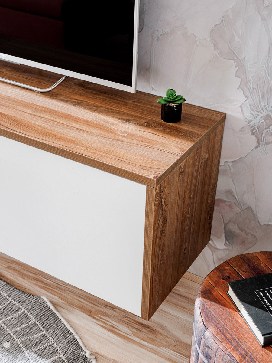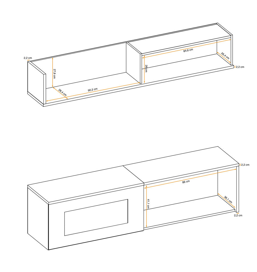 Avira è una parete moderna tra le più accoglienti della categoria grazie alla presenza del camino elettrico che rende questa composizione da soggiorno super funzionale. La nostra parete design infatti è composta da un pensile formato da caminetto e da un mobiletto laterale con anta a ribalta. La mensola da collocare nella parte superiore, accoglie un piccolo scomparto chiuso da anta. Da sottolineare il binomio di finiture del legno bianco opaco e noce, un accostamento gradevole sempre e ovunque.
